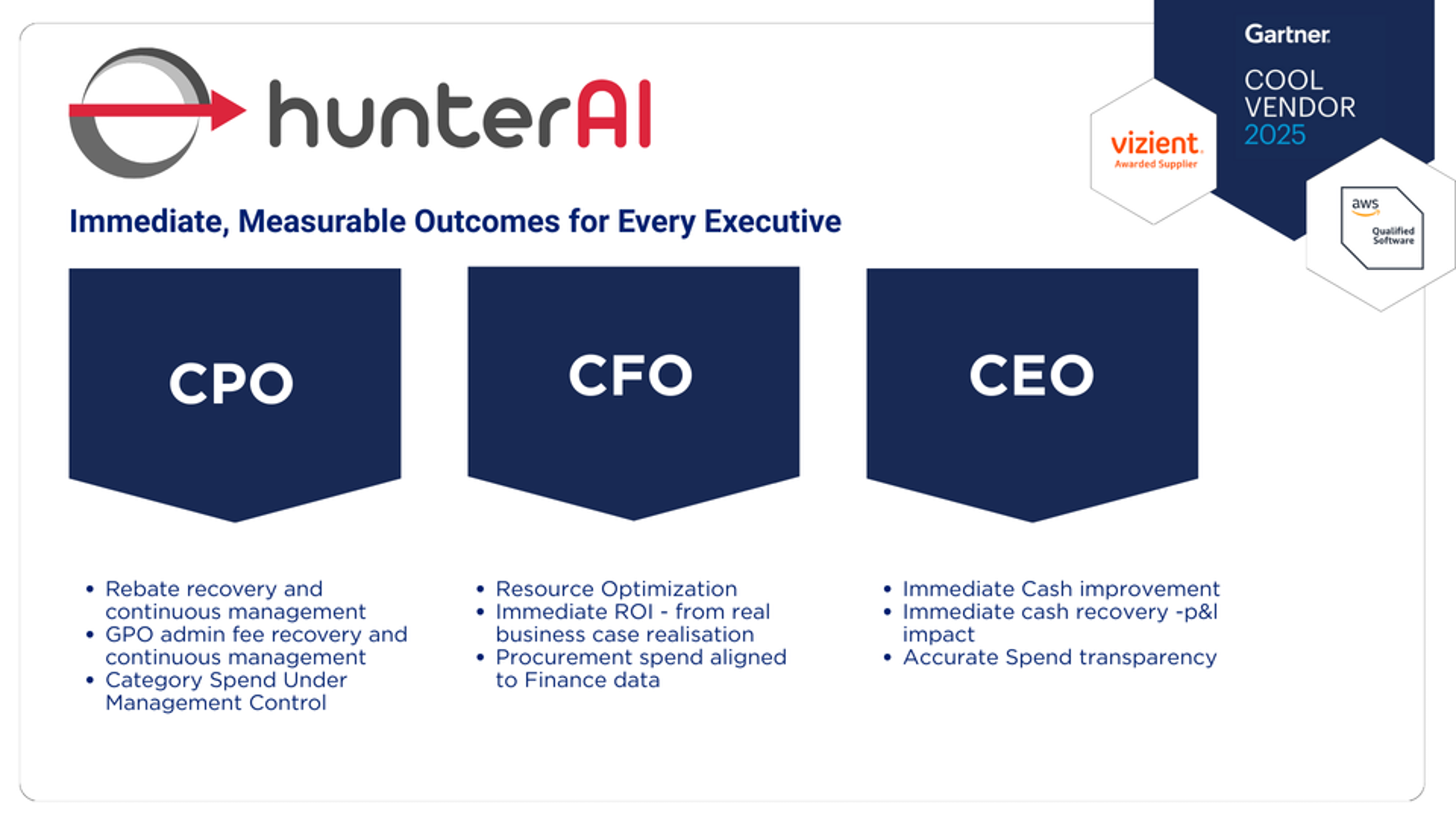 This recognition validates our focus on healthcare and enterprise procurement, where CFOs and supply-chain leaders are under immense pressure to drive efficiency, reduce leakage, and capture new sources of value. hunterAI’s platform is not just about analytics – it is about closing the loop from data to decision to measurable impact.